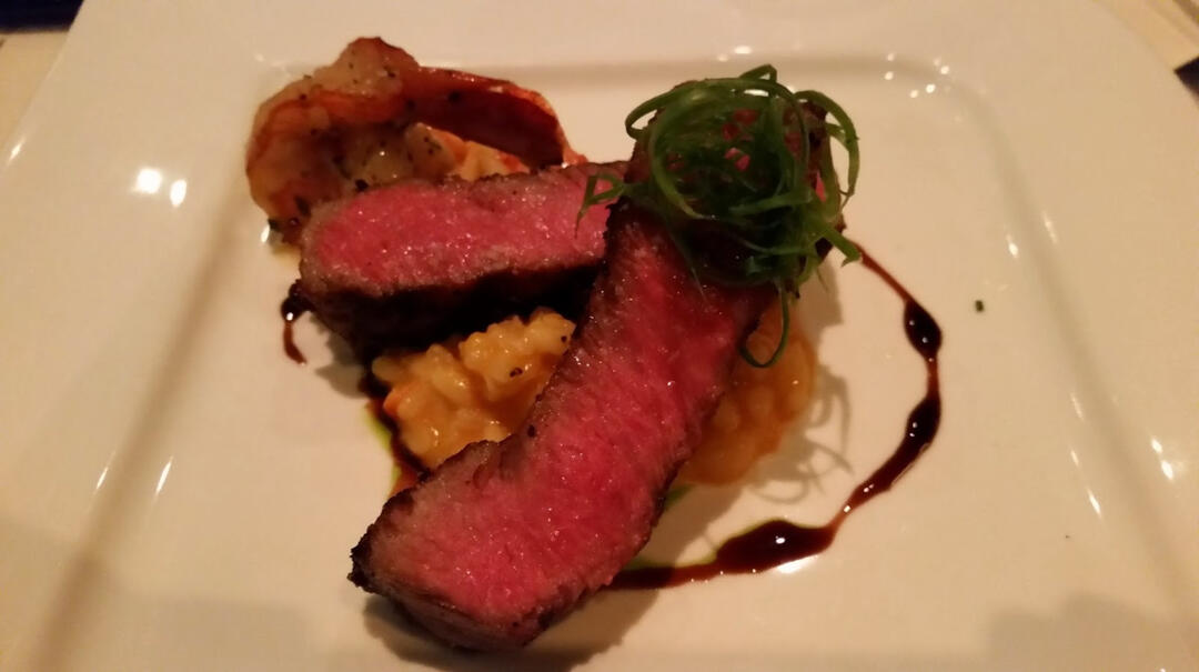 Strip Steaks with Rosemary-Garlic Butter, Taleggio Mashed Potatoes & Roasted Broccoli Rabe. This surf and turf combines seared strip steak with butter-drenched lobster tails.