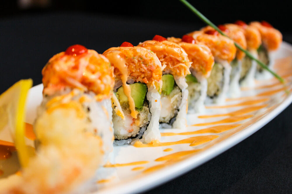 the Dynamite Roll, consisting of 3 types of seafood (scallop, shrimp, and yellowtail) with that addicting spicy mayo sauce.